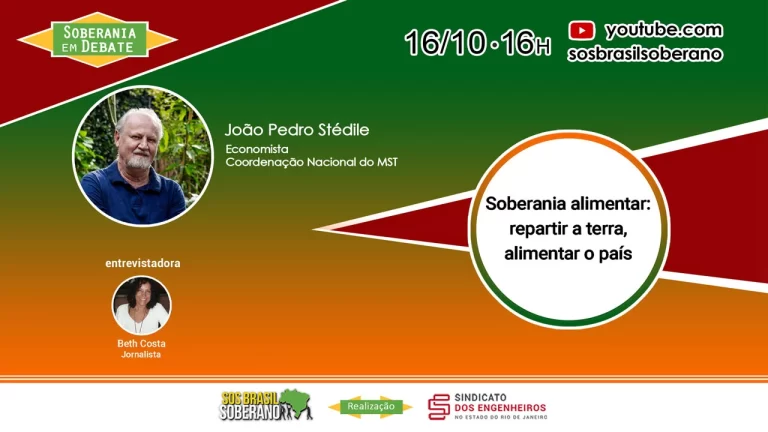 𝑺𝑶𝑩𝑬𝑹𝑨𝑵𝑰𝑨 𝑬𝑴 𝑫𝑬𝑩𝑨𝑻𝑬 ️️🔸Soberania alimentar: repartir a terra, alimentar o país 🕓Quinta-feira, 16 de outubro – 16h Acabar com a fome de todos os brasileiros