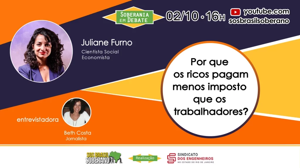“O sistema tributário brasileiro é um dos mais regressivos do mundo. Historicamente – desde a Constituição Federal de 1881 e passando pelas outras quatro até chegar à Constituição Federal de 1988 – o sistema se manteve ancorado em uma estrutura repleta de distorções, ineficiências e injustiças sociais”. A afirmação é da doutora em Desenvolvimento Econômico, Juliane Furno, a convidada da semana no Soberania em Debate.